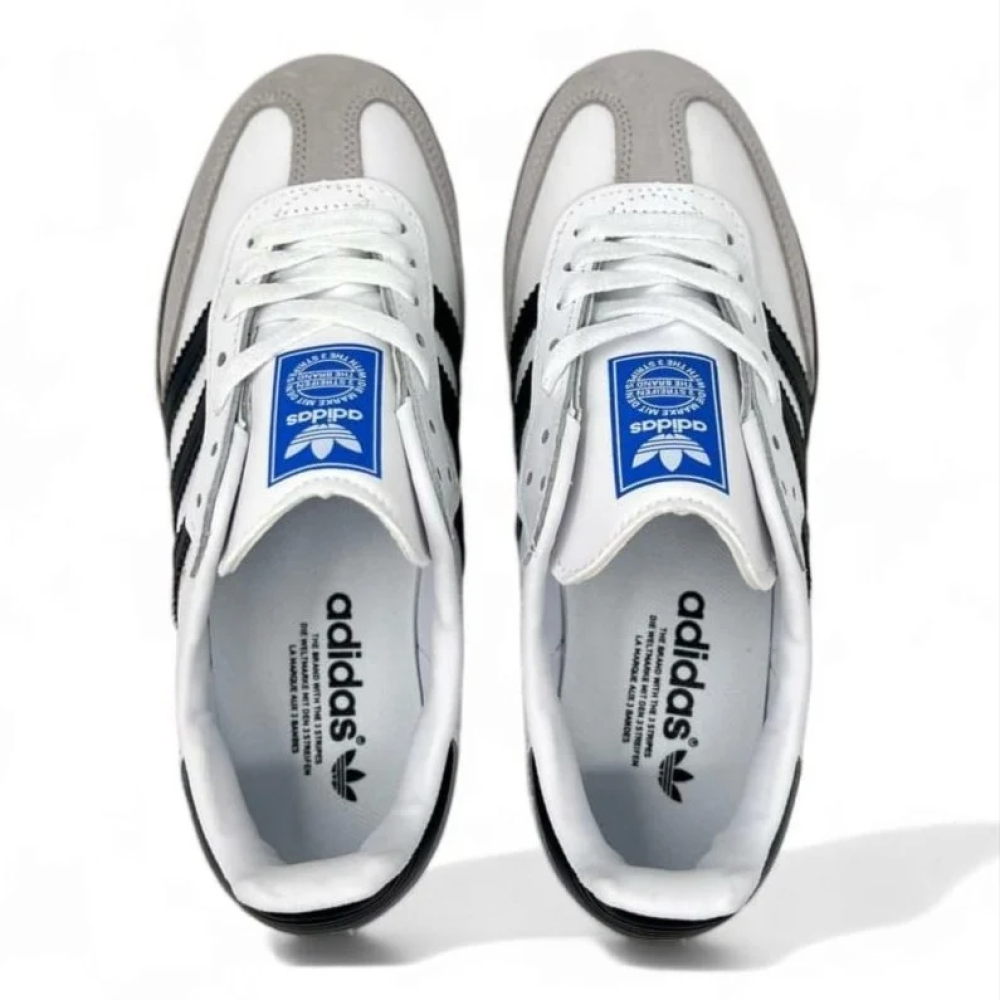 • تصميم كلاسيكي أنيق: يتميز حذاء Samba بتصميمه الأيقوني الذي يجمع بين الجلد الطبيعي واللمسات الناعمة من الجلد المدبوغ، مما يضفي مظهرًا جذابًا يلائم جميع الأوقات.