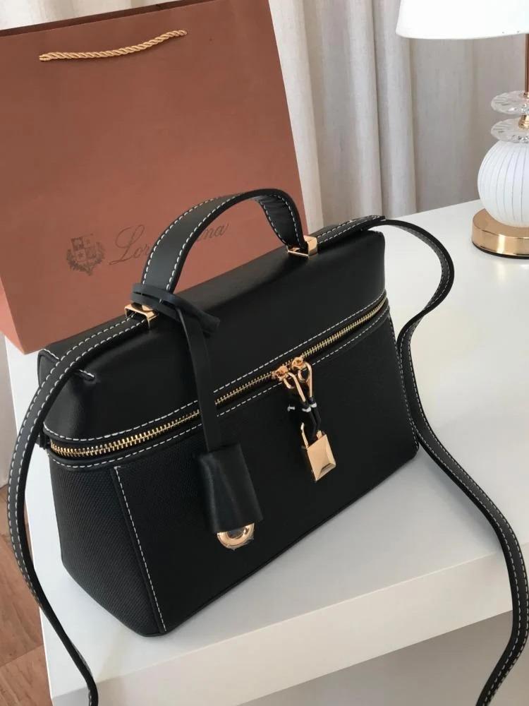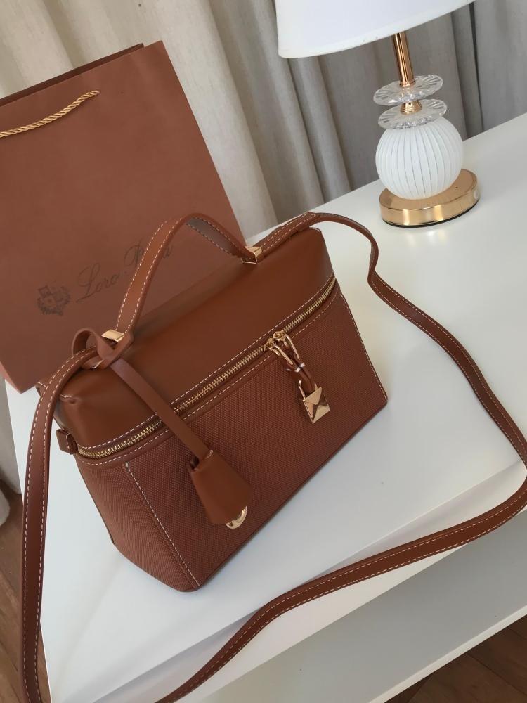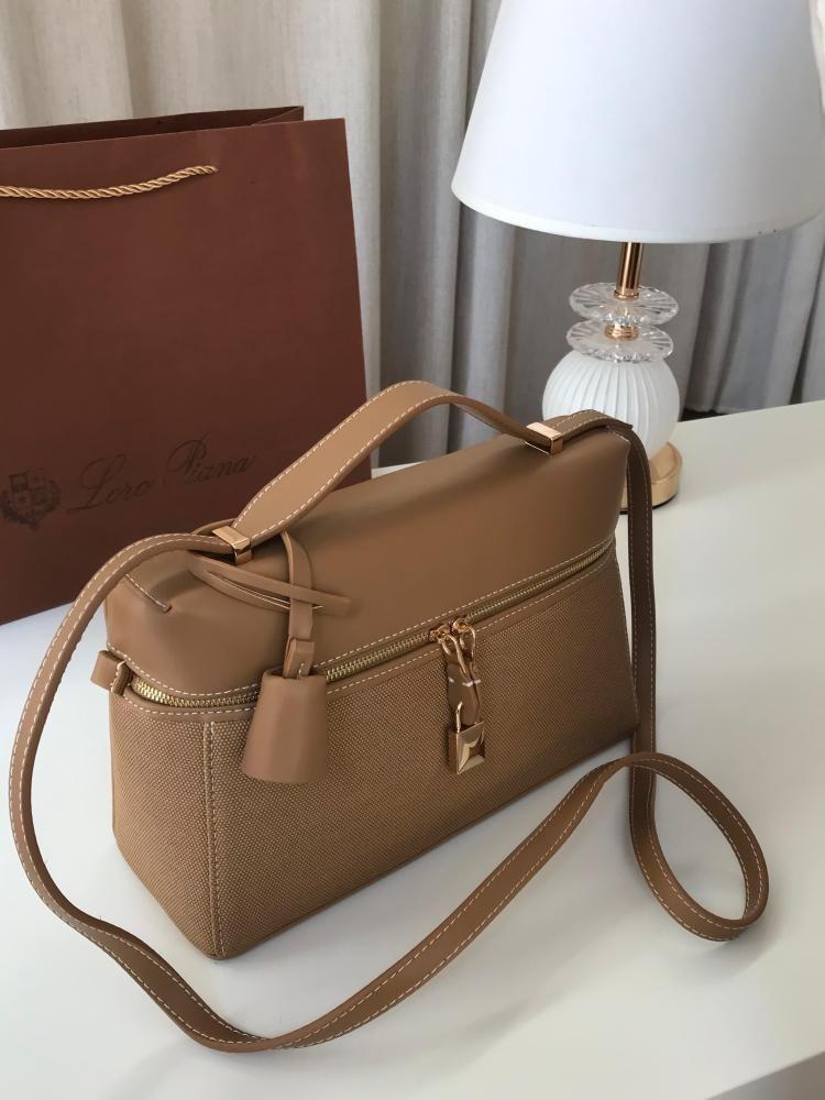 حقيبة Loro Piana الفاخرة التي تجمع بين التصميم الكلاسيكي واللمسات العصرية. تأتي بتصميم مع مزيج من الجلد الناعم والقماش الفاخر، مما يمنحها طابعاً أنيقاً يناسب مختلف المناسبات.