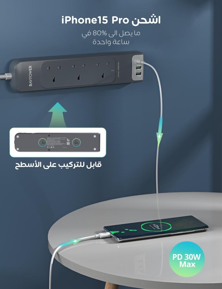 توصيلة كهربائية راف باور RAVPOWER بـ6 منافذ بطول 3 متر
